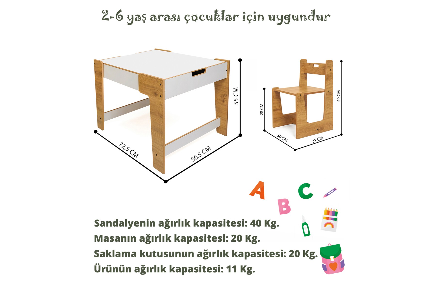 0-6 Yaş Anka Model Ahşap Montessori Aktivite Oyun Ve Çalışma Masa Ve Sandalye Seti (1 Masa + 1 Sandalye)