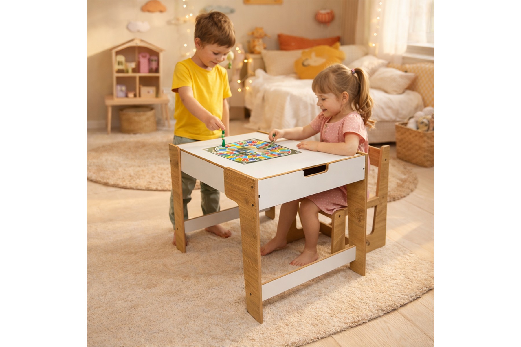 Çocuğunuzun oyun, çalışma ve yaratıcılık alanı için özenle tasarlanmış, çok işlevli set olan Akıllı Yer Tasarruflu Masa ve Sandalye Setimizi sunuyoruz.